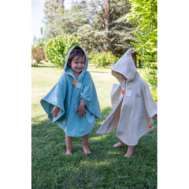 Cette cape de bain pour bébé et enfant est confectionnée dans une éponge velours de belle qualité épaisse et moelleuse 450 grm2, aux couleurs douces. Idéale en sortie de bain, notre cape de bain est aussi l'alliée parfaite des bains de mer !
